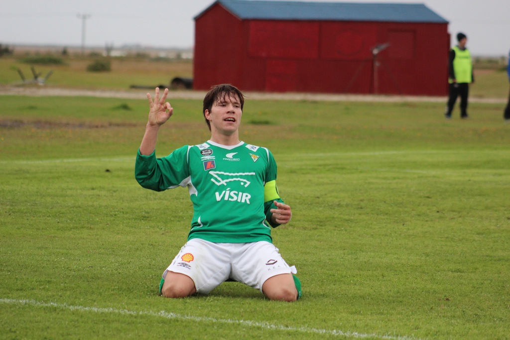 Völsungs skoraði þrennu í, 1-4, sigri á Hvolsvelli í dag. Völsungar sitja nú á toppi deildarinnar með 40 stig.