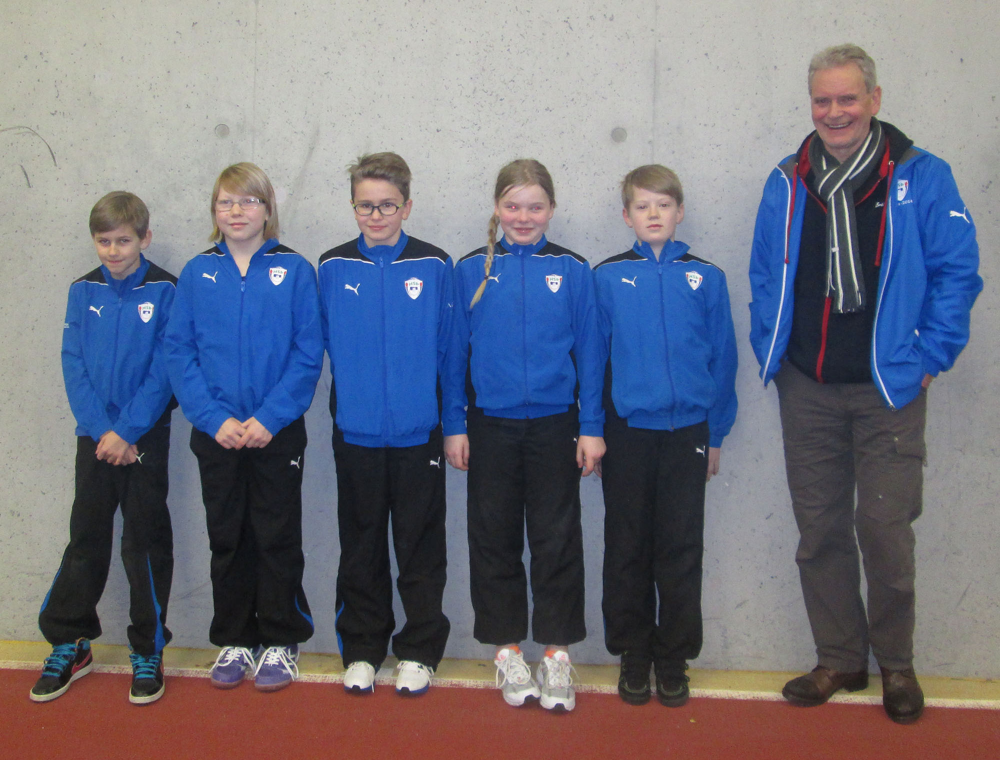 Keppendurnir HSÞ mótinu. Bergþór Snær Birkisson, Katla María Kristjánsdóttir, Benóný Arnórsson, Natalía Sól Jóhannsdóttir, Ari Ingólfsson og þjálfarinn þeirra Jón Fr. Benónýsson.