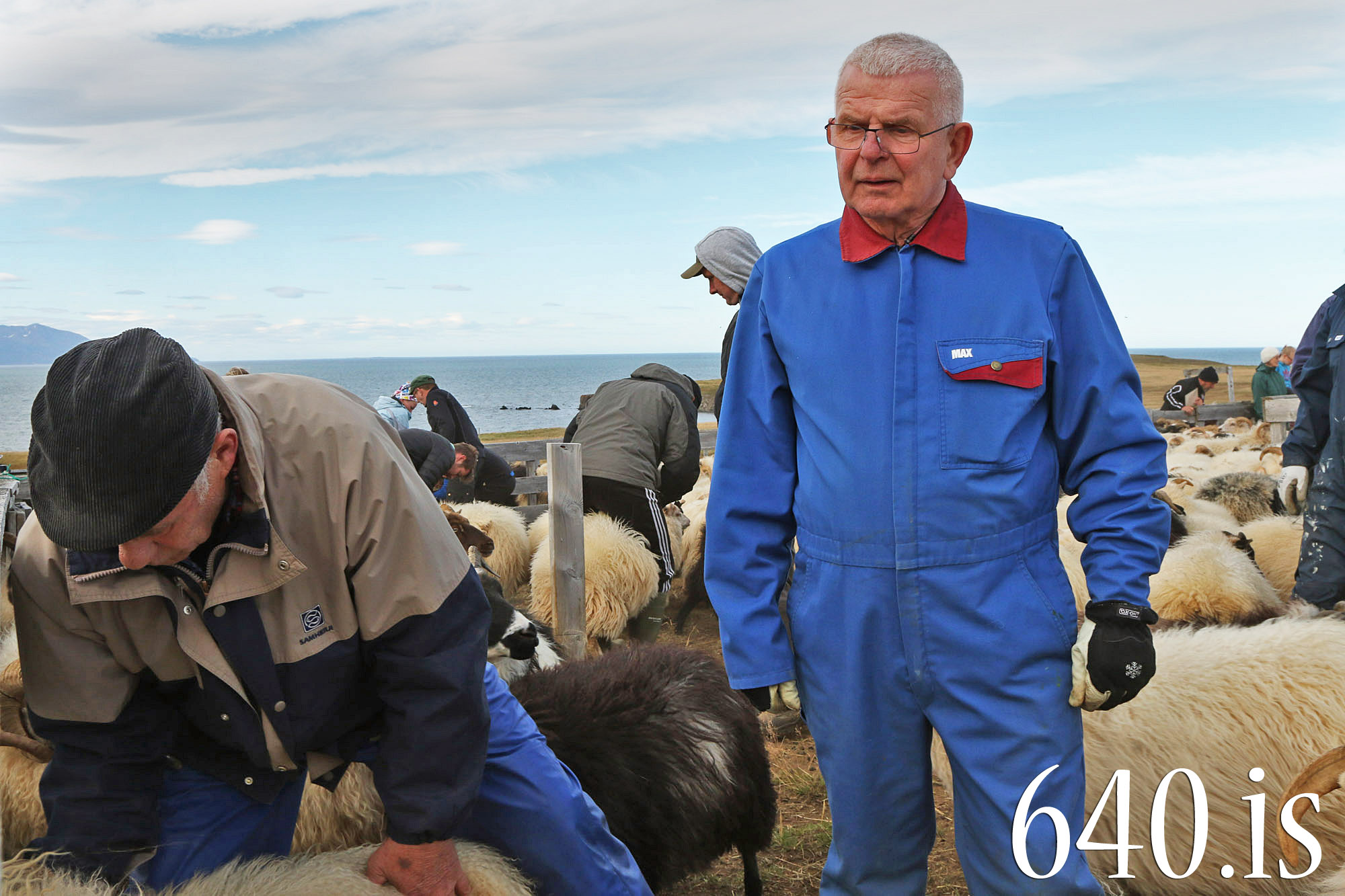 Atli á Laxamýri var að vanda í Húsavíkurrétt en það slæðist fé frá honum með fé húsvíkinga til byggða.