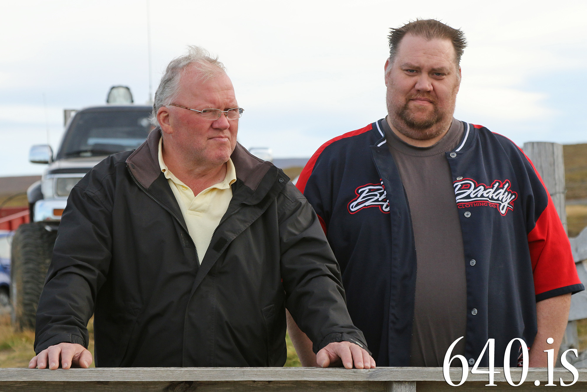 Að venju var margt fólk að fylgjast með og meðal þess voru feðgarnir Hreinn og Jón.