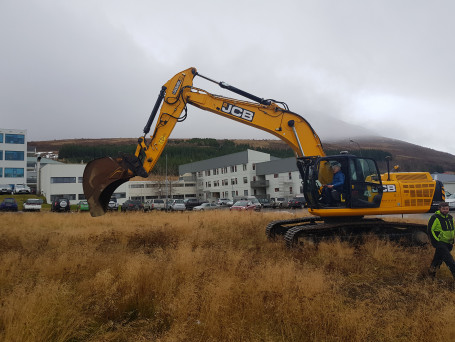 Jn Helgi Gestsson tk fyrstu skflustunguna a nju fjlblishsi vi tgar.