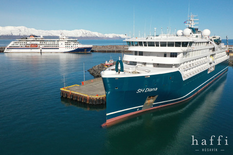 Mynd dagsins var tekin i morgun við höfnina en tvö skemmti-ferðaskip voru þá við bryggju á Húsavík.