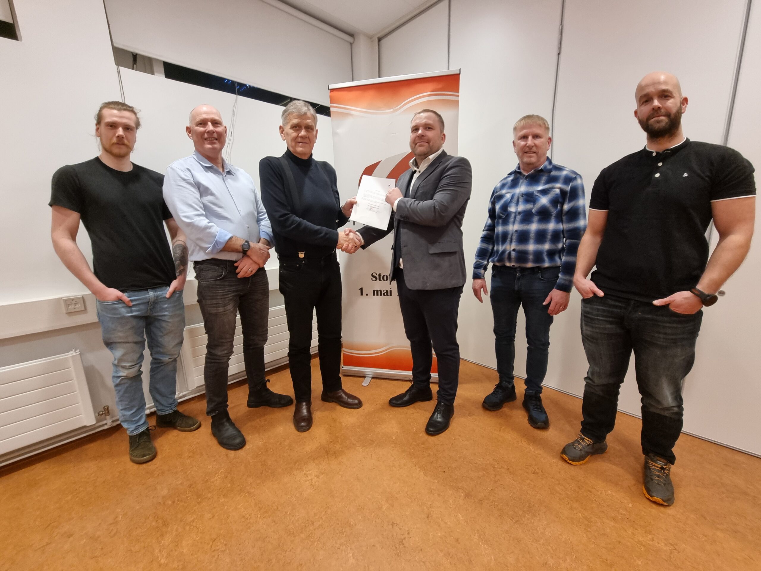 Jnas Halldr Fririkssonframkvmdastjri Vlsungs er hr me stjrnarmnnum Sjmannadeild Framsnar vi afhendinguna gjfinni.