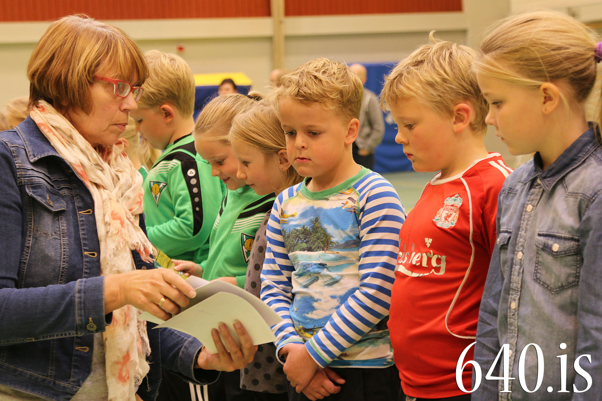 7. flokk fa drengir og stlkur saman og hr afendir Gurun formaur viurkennigarskjl og myndir.