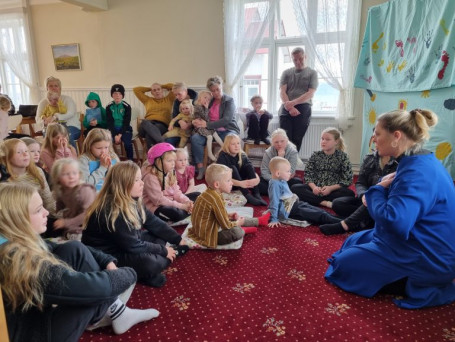 Fermingarbörn ađstođa í vetur međ ýmsum hćtti:Leika Mýslu og Rebba, leiđa söng eđa eru tćknimenn á tölvunni. Síđan ţarf líka ađ skera niđur ávexti, blanda djús og hella upp á kaffi, ţví ađ lokinni samveru er gott ađ setjast niđur og börnin lita, fá sér hressingu og viđ spjöllum saman. Öll börn fá fjársjóđskistu sem ţau safna myndakortum í og á kortunum er ađ finna QR-kóđa sem geymir góđar hugmyndir ađ samveru međ börnunum.