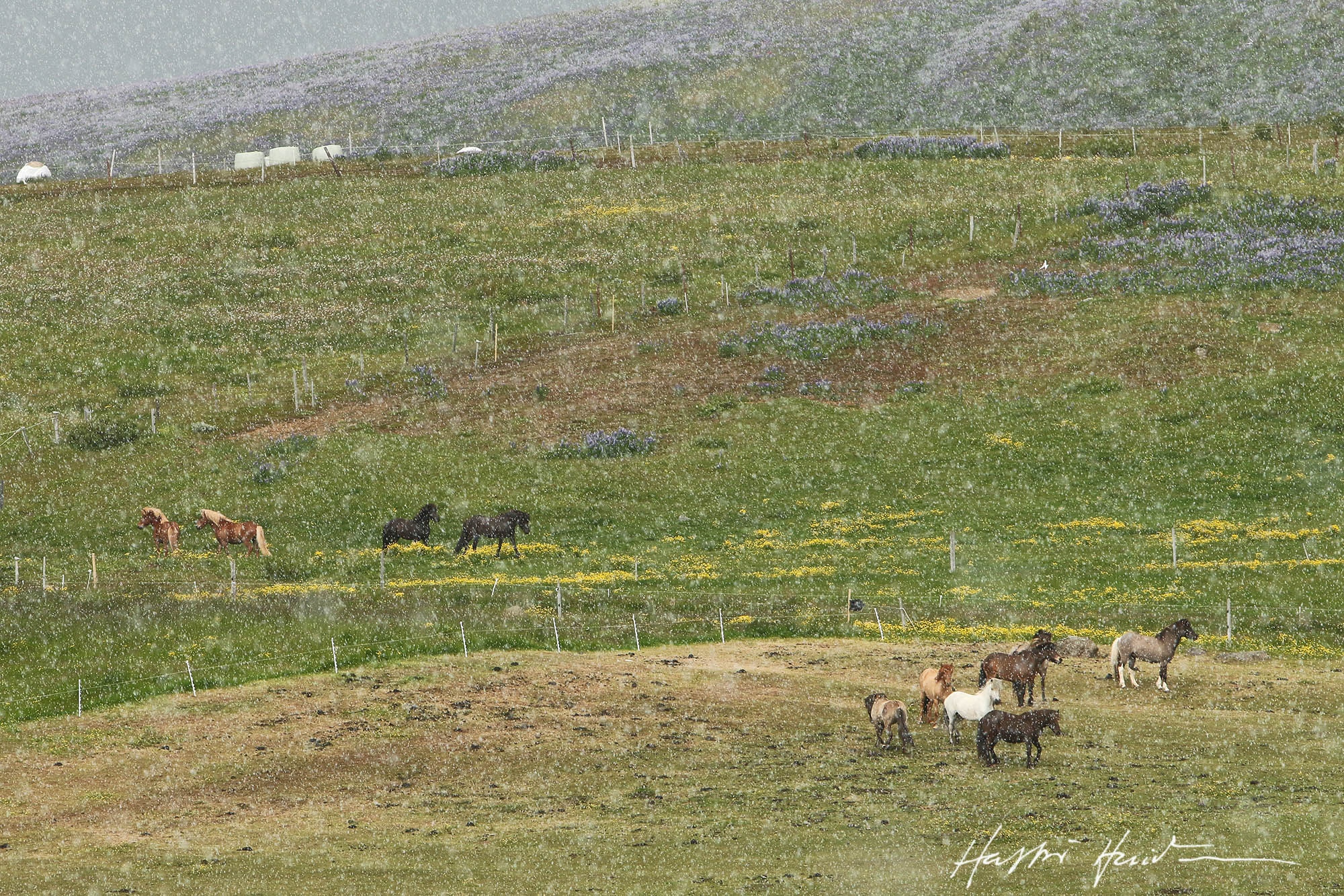 Þá efri tók ljósmyndari 640.is af hrossum við Traðargerði en þá neðri Hjálmar Bogi Hafliðason sem staddur var í golfskálanum á Katlavelli. Með þvi að smella á þær er hægt að skoða þær í stærri upplausn.