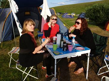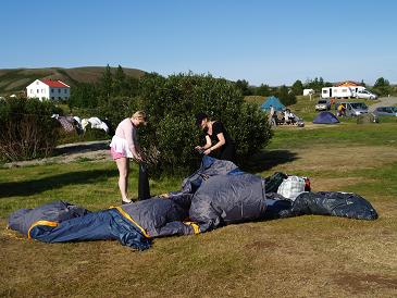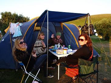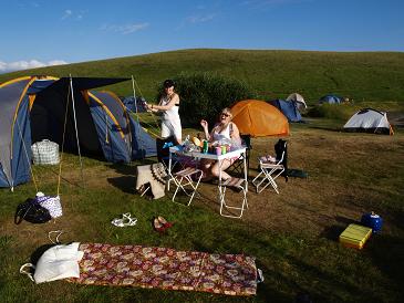 Þegar við vorum búnar að hlusta á þessa gaura skutluðumst við aftur niður á tjaldstæði þar sem